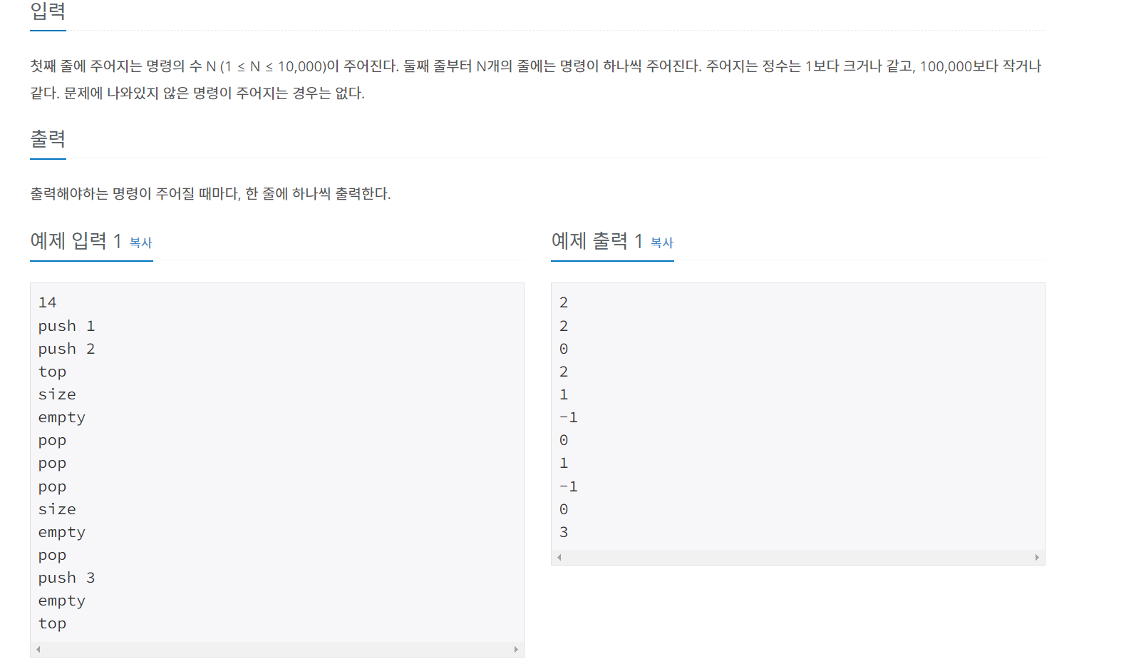 스택을 구현 하는 문제이다 .