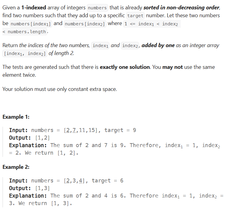 (핵심) 이 문제의 핵심은 이미 정렬이 되어는 배열을 주어 진다는 점이다.