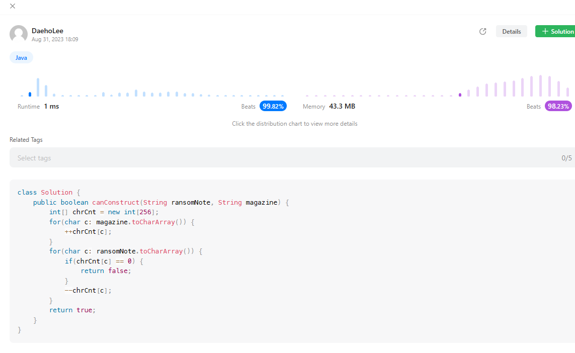 | [leetCode 242번] Valid Anagram (Java) (0) | 2023.08.31 |
